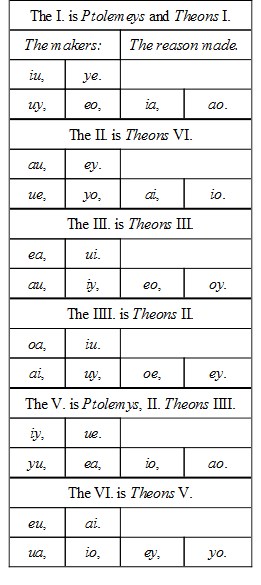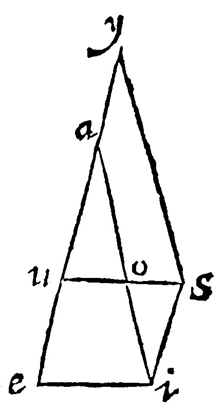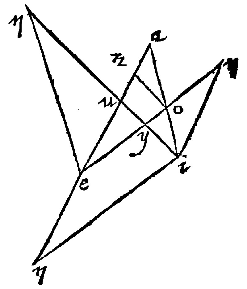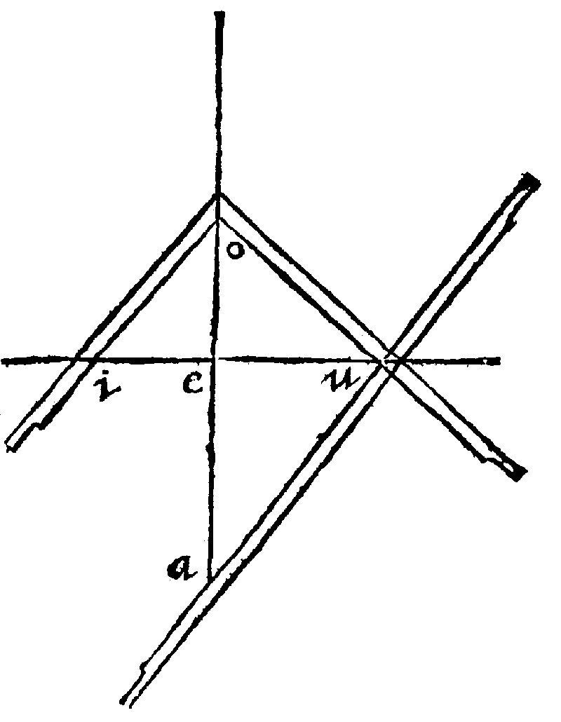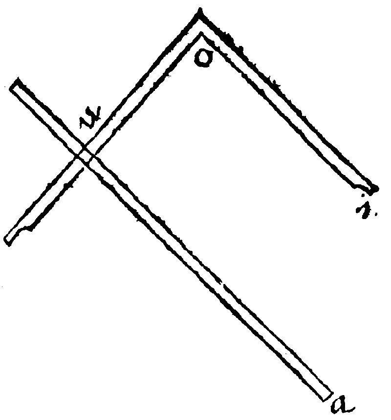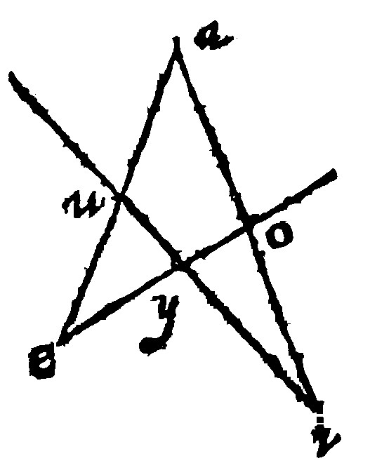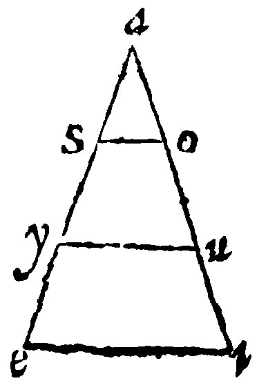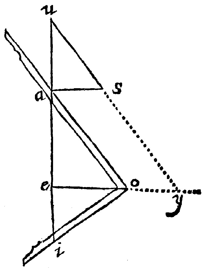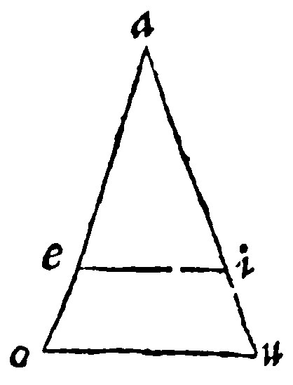 Let the lines given be these: The first ae, the second ei, the third ao, and let the whole diagramme be made up according to the prescript of the consectary. Here by 28. e, as ae, is to ei so is ao, to ou. Thus farre Ramus.