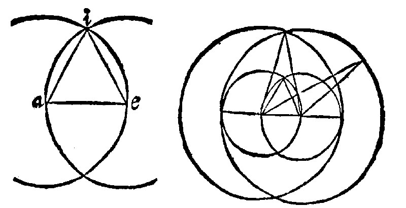As here upon ae, there is made the equilater triangle, aei; And in like manner may be framed the construction of an equicrurall triangle, by a common ray, unequall unto the line given; and of a scalen or various triangle, by three diverse raies; all which are set out here in this one figure. But these specialls are contained in the generall probleme: neither doe they declare or manifest unto us any new point of Geometry.