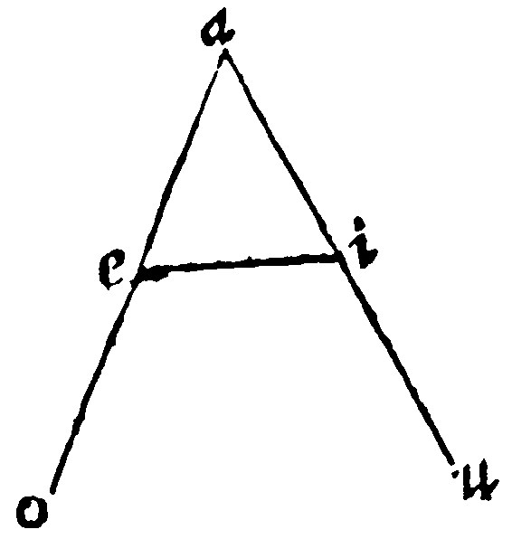 As here in the triangle aei, let ou, be parallell to the base; and let a third parallel be understood to be in the toppe a; therefore, by the 28. e. v. the intersegments are proportionall.