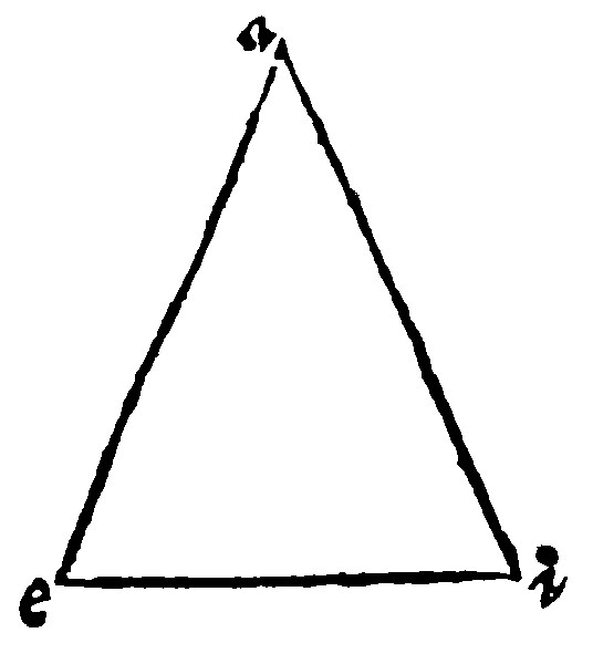 As here aei. A triangular figure is of Euclide defined from the three sides; whereupon also it might be called Trilaterum, that is three sided, of the cause: rather than Trianglum, three cornered, of the effect; especially seeing that three angles, and three sides are not reciprocall or to be converted. For a triangle may have foure sides, as is Acidoides, or Cuspidatum, the barbed forme, which Zonodorus called Cœlogonion, or Cavangulum, an hollow cornered figure. It may also have both five, and sixe sides, as here thou seest. The name therefore of Trilaterum would more fully and fitly expresse the thing named: But use hath received and entertained the name of a triangle for a trilater: And therefore let it be still retained, but in that same sense:
