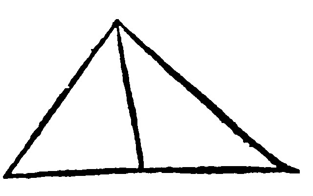 9. If a right line drawne from the toppe of a triangle, doe cut the base into two equall parts, it doth also cut the triangle into two equall parts: and it is the diameter of the triangle.