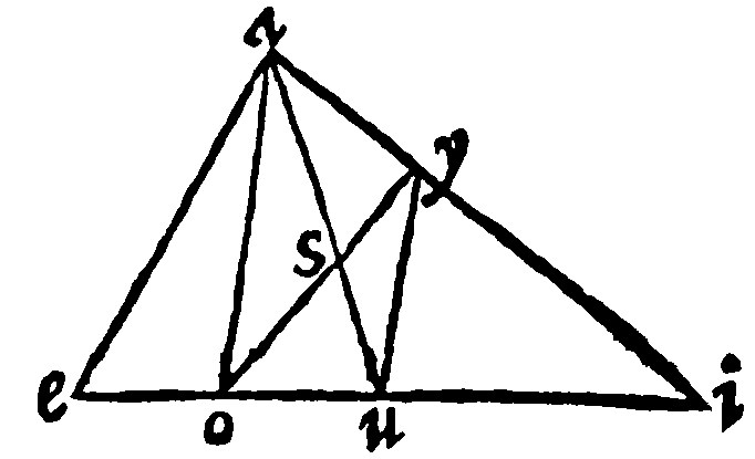 Take away ysu, the common triangle; And you shall leave asy, and osu, equall betweene themselves: The common right lined figure ysui, let it be added to both the sayd equall triangles: And then oyi, shall be equall to aui, the halfe part; And therefore aeoy, the other right lined figure, shall be the halfe of the triangle given.