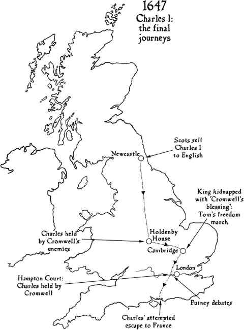 Six months had passed since the Royalist defeat at the battle of Naseby. Yet the King was in the hands of the Scots. We were supposed to be on the same side – but the Scots would not leave England until they were paid and there were rumours they were doing a secret deal with the King. In spite of the stone in his bladder, his piles and his liver, Lord Stonehouse was in Newcastle, negotiating for the release of the King.