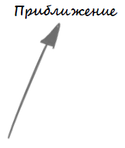 Говоря это, терапевт пишет: «Отцепиться» вдоль стрелки «Приближение».