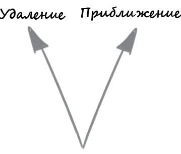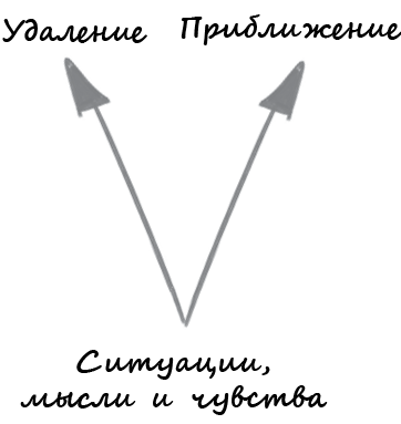В ситуациях когда действия приближают нас к той жизни, которую мы хотим прожить, когда мы ведем себя как человек, которым мы хотим быть, речь идет о приближении. Когда ситуация такова, что действие отдаляет нас от той жизни, которой нам хотелось бы жить, и делает нас непохожим на того человека, которым мы хотим быть, мы имеем дело с удалением. Если мы записываем подобные примеры на листе с точкой выбора, мы можем записать и уточняющую информацию, позволяющую определить, удаление или приближение перед нами, исходя из контекста. Например, около своих стрелок я бы написал: «смотреть телевизор, чтобы избежать важных дел» и «смотреть телевизор как часть сбалансированного образа жизни».
