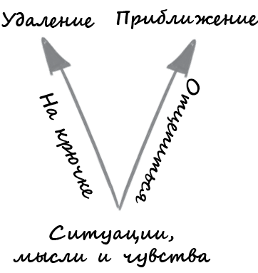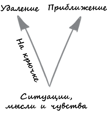 Тонкости терминологии. Некоторые люди, работающие с АСТ, используют термин «на крючке», только когда речь идет о когнитивном слиянии. Точка выбора предполагает более широкое значение этого термина, куда попадает как когнитивное слияние, так и избегание переживаний. Мы подробно остановимся на этом в главе 2.