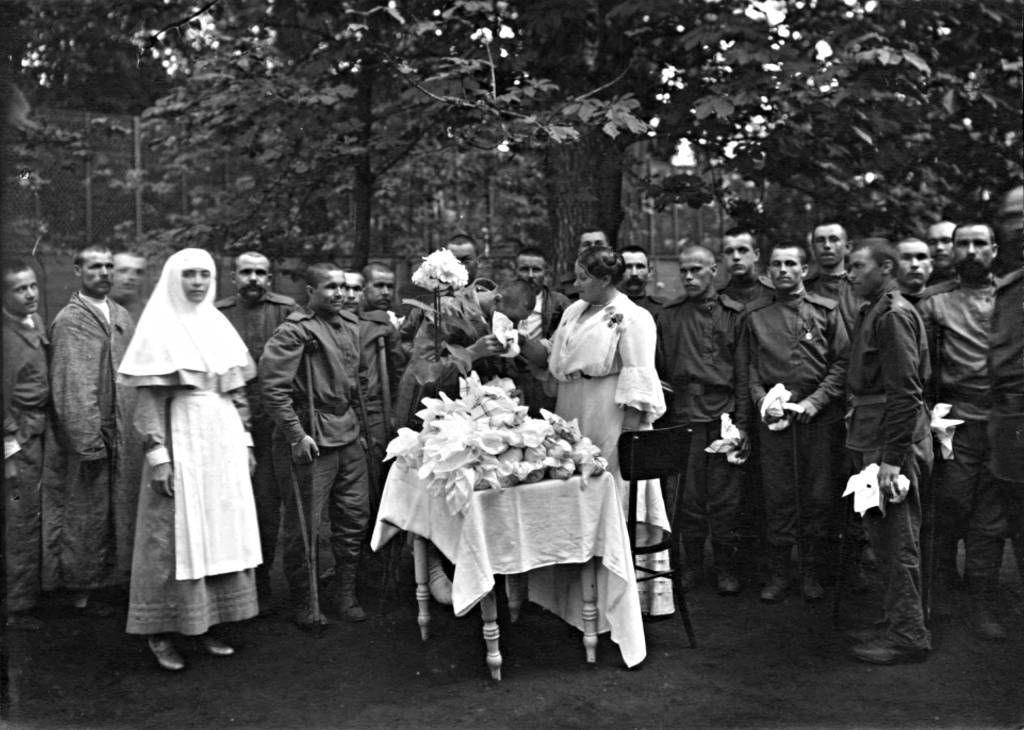 Фото 62. Раздача подарков раненым. Серафимовское убежище-лазарет. Лето 1916 г.
