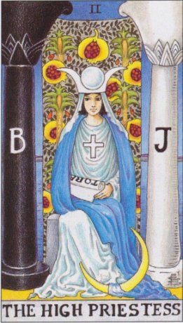 Путь от Сфиры Кетер к Тиферет, поэтому аркан Жрица нередко называют «Вратами Изиды», символическим прохождением посвящения, открывающего высший уровень тайных знаний, переход к верхней триаде Древа Жизни. Здесь Идея-Шут, становясь формой, преобразуется в энергию и воды бессознательного. Мы видим, что аркан Верховная Жрица (инь) в порядке нисхождения Божественного Света Айн-Соф через Кетер следует после аркана Маг (ян), как и сфира Хокма, идущая в системе каббалы второй и при этом названная мужской следует перед третьей сфирой Бина, названной женской. Но, строго говоря, я с этим не согласен, моя логика и интуиция протестуют: большое всегда повторяется в малом, нижнее подобно верхнему, а во всех мифологиях прежде появляется подложка, энергия, пространство, на которой уже идёт оформление, на основе которой уже формируется материя, даже в биологических циклах развития прежде идёт энергия, ресурсы (яйцо с белком и желтком как питательными веществами; аморфные стволовые клетки, не имеющие специализации, но в процессе роста проходящие дифференциацию), а потом уже вылепливается плод с определёнными заданными внешними и внутренними признаками, даже в научной теории происхождения Вселенной прежде образуются газообразные скопления, которые по мере эволюции обретают всё более жёсткую форму и разграничение по составу.