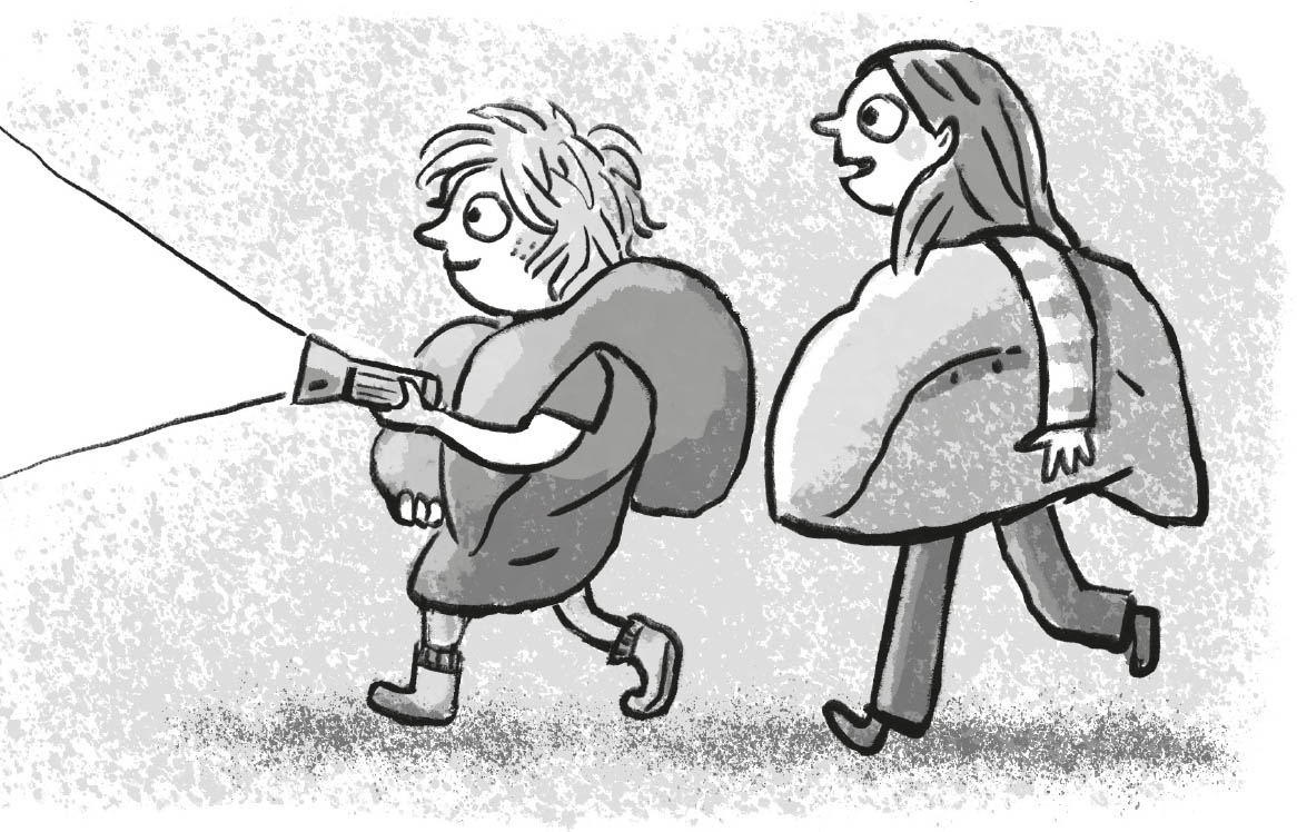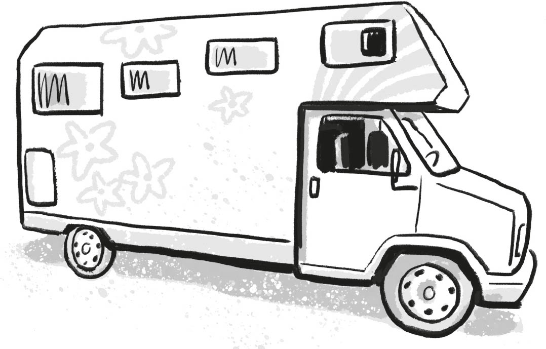 Meine Schwester Mia und ich dürfen dann sogar ab und zu im Herbert-Bus übernachten! Da erzählt uns mein Onkel vorm Schlafengehen gute Gute-Nacht-Geschichten von seinen Reisen oder von der Zeit, als er und die Mama noch klein waren. Die Erzählungen sind so kribblig-aufregend, lachanfall-lustig oder beides zusammen, dass wir erst recht nicht schlafen können. Aber spätestens dann, wenn der Dachs wie ein alter Pandabär schnarcht, fallen auch uns die Augen zu.