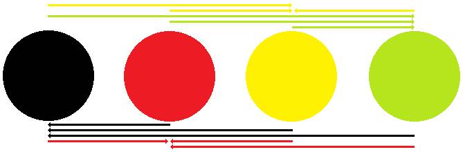 Рисунок 1 Теоретическое гравитационное взаимодействие между атомами (стрелки указывают, на какой атом воздействует гравитация другого атома).