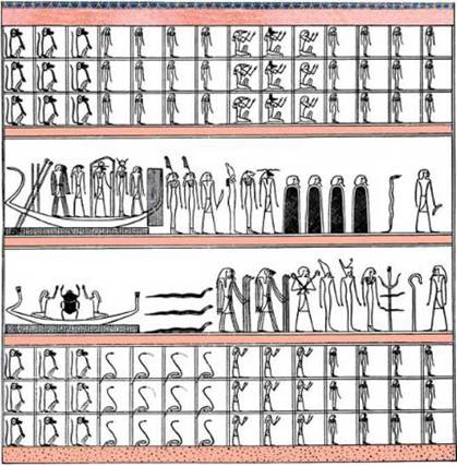 Итак, барка со «старым», вечерним солнечным богом вплывает в подземный мир.