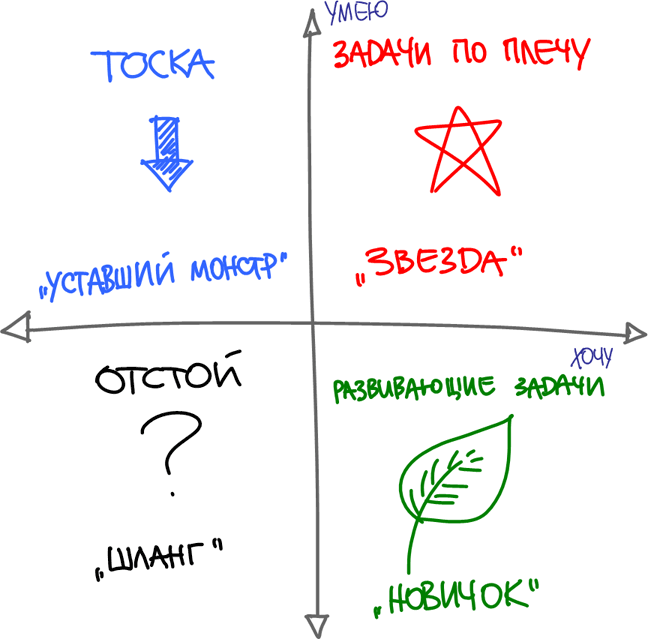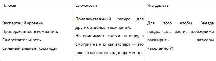 Звезда – это сотрудник, у которого все ОК в трёх направлениях: