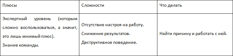 Вывод: не существует «типов» сотрудников – Новичок или Звезда, – а существуют ваши состояния, которые определяются не вашими З. Н. О. (знаниями, навыками, отношением), а собственно задачей, которую вам ставит руководитель.