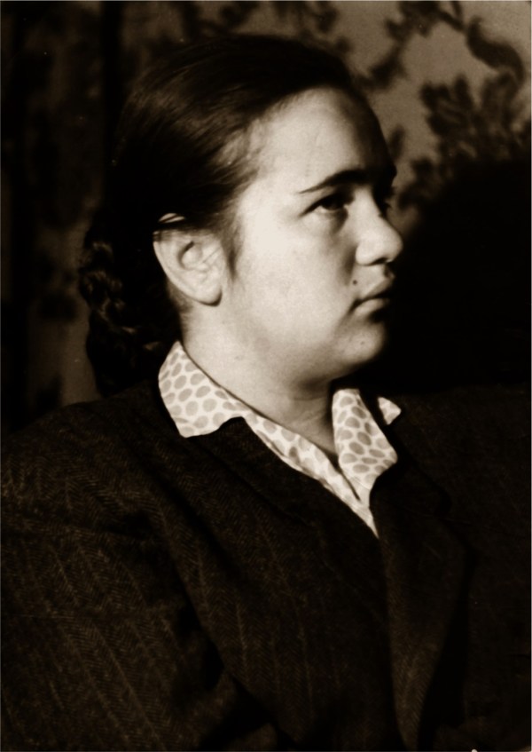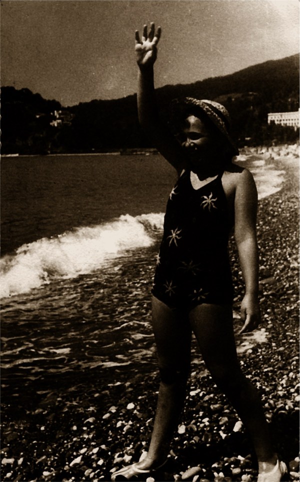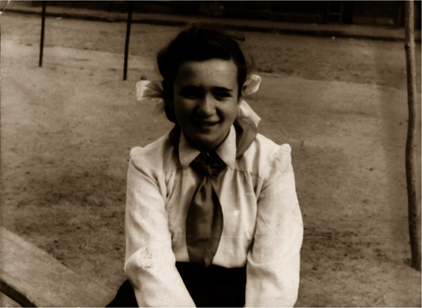 Середина 40-х. Надпись на обороте фотографии: «На память дорогим бабуле и дедуле от Гали. Бабуля и дедуля, это я снималась на теннисном корде». Орфография сохранена.