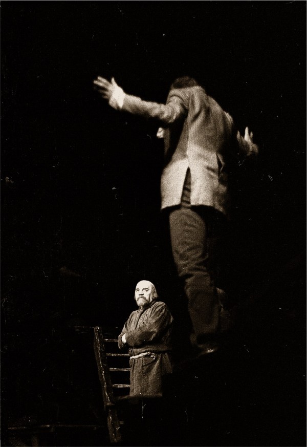 Финал Волчек выстроила по законам геометрии. В центр композиции она поместила шаткий, пьяный треугольник – многофигурное основание сужалось, поднимаясь кверху, и завершалось фигурой Сатина на последнем лестничном пролете. Дико, грубо и нестройно треугольник рычал: