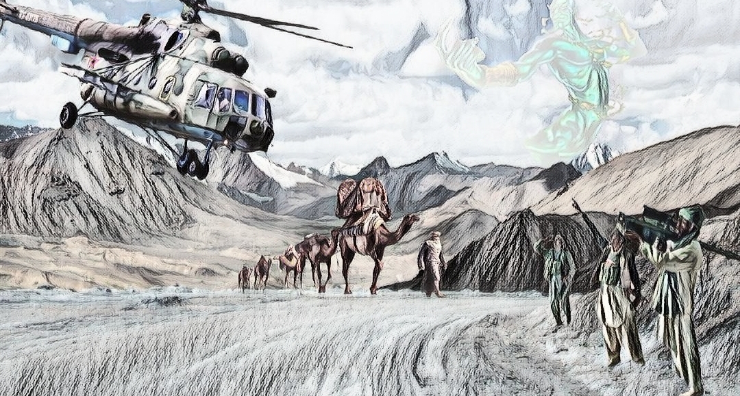 Ровный звенящий звук быстро перешел в грохот вертолета, теперь Глеб сидел внутри машины с пулеметом наизготовку и наблюдал как внизу по песку движется караван. Пять верблюдов вытянулись в цепочку, между их горбами покачивалась поклажа, а параллельным с верблюдами курсом медленно двигались 12 человеческих фигур. Головы их венчали объемные белоснежные чалмы, а раздвигавшиеся при каждом шаге полы длинных темных халатов, демонстрировали ноги в белых кальсонах. Они тонули в песке и караван внизу двигался, как в замедленном кино. Потом процессия остановилась, несколько человек забегали, перед ними стал подпрыгивать и вздыматься песок, а к шуму двигателя вертолета добавился стрекот пулемета. Глеб видел чью-то руку, нажимающую на гашетку, а через нее в дверном проеме вертолета картину внизу. Путники один за другим падали на песок, трое уже лежали неподвижно, а двое водрузили на плечи стингеры и выставили их в сторону вертолета.