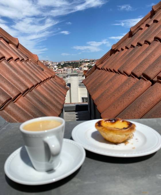 А как вам португальский вариант в виде кофейка и слоеной чашечки с заварным кремом паштел-де-ната?