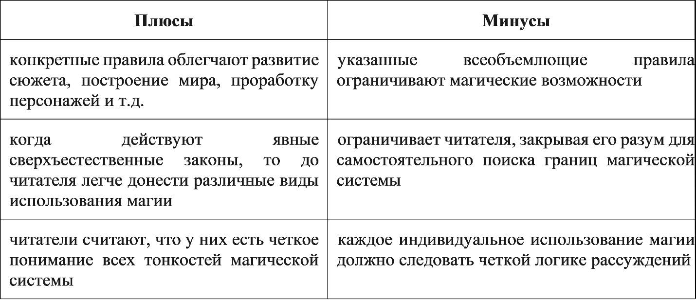 Структурированные магические системы должны придерживаться жесткой логики. Она и задает рамки, которые определяют движение автора. Любой выход за эти рамки должен обосновываться. В противном случае произведение подвергнут критике.