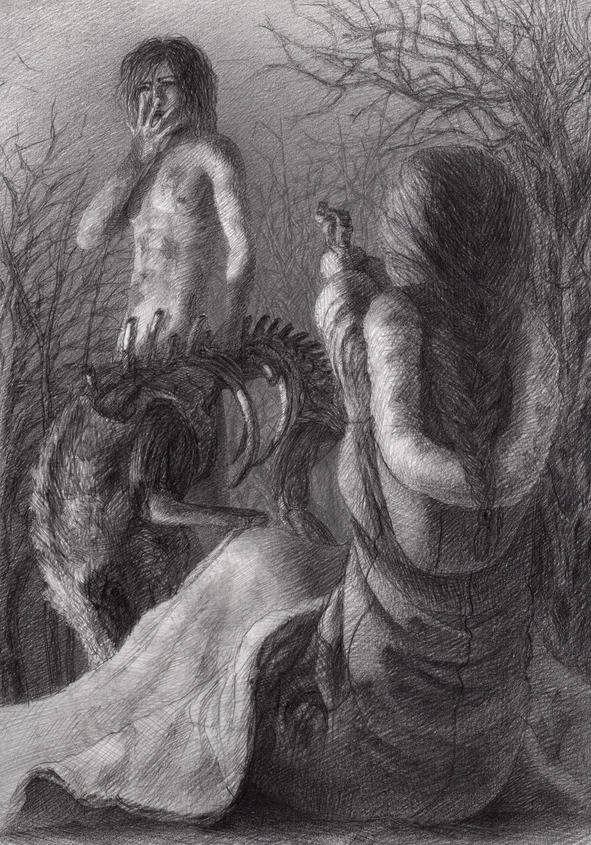 Он улыбнулся, подмигнул ей и ушел во тьму леса.