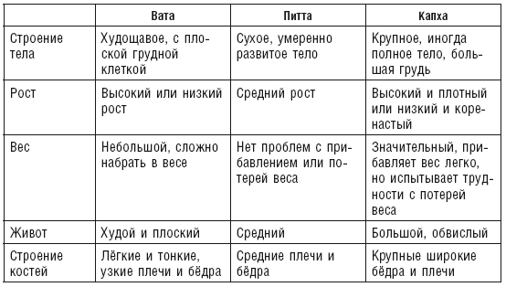 Большинство людей относятся к типам с двойной дошей. Результаты теста могут выглядеть так: Вата – 15, Питта – 25, Капха – 5. Если ты, к примеру, набрал именно такое количество баллов, ты принадлежишь к типу Питта-Вата. У людей, которые относятся к типу с тройной дошей, все три окончательных балла приблизительно одинаковы.