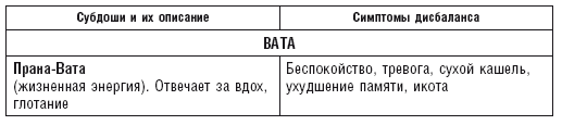 Касательно аппетита, люди Вата-типа всегда озабочены едой, но аппетит у них непостоянен: сильный голод может назавтра смениться отсутствием интереса к пище. Люди, страдающие головокружениями или обмороками, когда нет возможности перекусить между приёмами пищи, также относятся к Вата-типу. Строгий пост не приносит им радости, потому что их организм не запасается достаточным количеством энергии, чтобы выдержать длительные ограничения в пище.