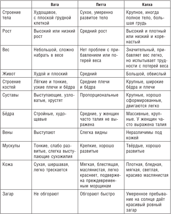Доши раскрывают индивидуальный тип конституции человека. Сухая кожа – признак доминирующей Ваты, чувствительная маслянистая кожа – признак лидирующей Питты, Капхи имеют хорошую кожу с красивой матовой маслянистостью.