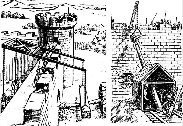 При осаде одной горной крепости ассирийцы применили одновременно семь таранов. Оборонявшиеся вели борьбу с таранами при помощи цепей, которые набрасывались на головную часть тарана и подтягивали ее кверху, или при помощи метательных снарядов (сосудов) с горючим веществом, которым зажигались перекрытия каркаса.