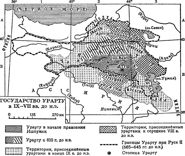 В конце IX века до н. э. отмечается быстрый рост государства Урарту. В этот период войско урартов осуществило завоевательные походы в горные районы к юго-востоку от Тушпы, на южное побережье озера Урмия и в Закавказье, в богатую долину реки Араке.