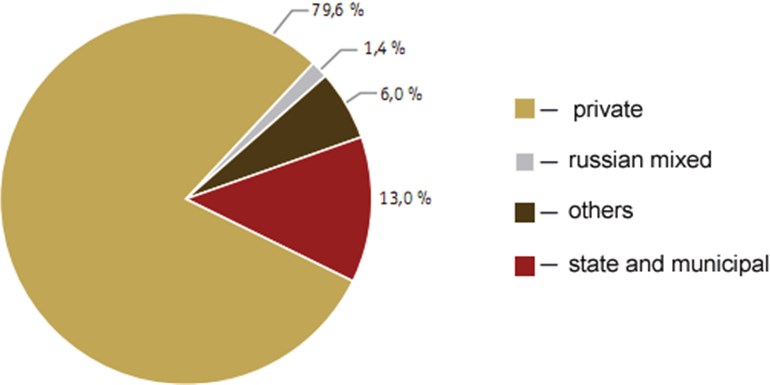 Distribution of economic entities according to the types of property (by January 1. 2008), %