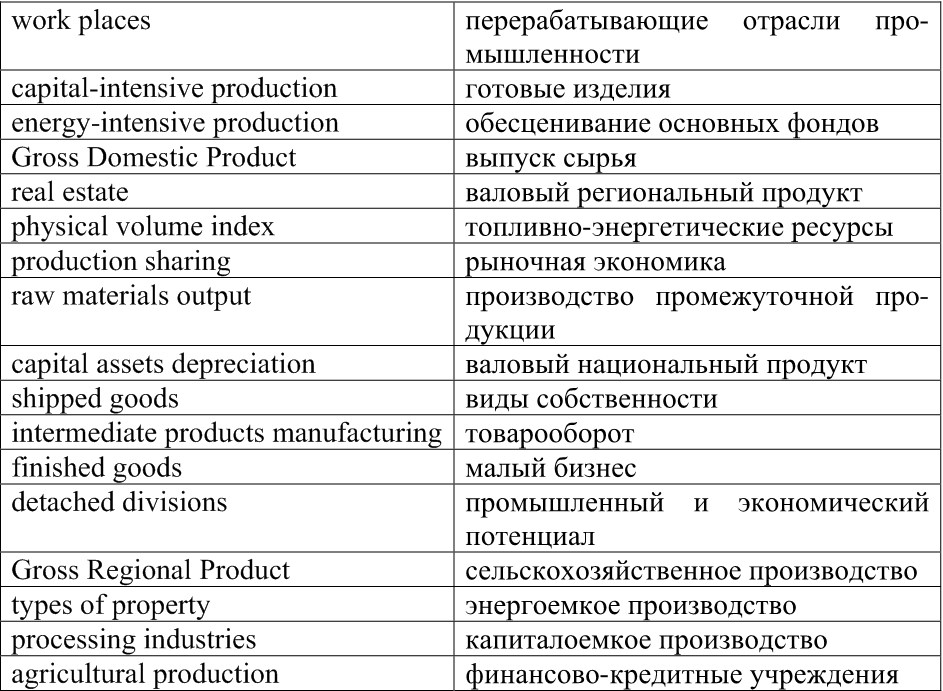 Task 7. Find the Russian equivalents of the written down English words and expressions from the text “Industrial and Economic Potential of the Krasnoyarsk Krai” (Task 6).
