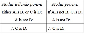 Hence, finally, a Disjunctive Syllogism being equivalent to a Hypothetical, and a Hypothetical to a Categorical; a Disjunctive Syllogism is equivalent and reducible to a Categorical. It is a form of Mediate Inference in the same sense as the Hypothetical Syllogism is; that is to say, the conclusion depends upon an affirmation, or denial, of the fulfilment of a condition implied in the disjunctive major premise.