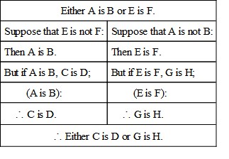 Another rhetorical consideration is, that the alternatives of the disjunctive conclusion of a Complex Dilemma should both point the same way, should be equally distasteful or paradoxical. 'Either inconsistent or unpatriotic': horrid words to a politician! 'Either no reality or no possible knowledge of it': very disappointing to an anxious inquirer! Thus the disjunctive conclusion is as bad for an opponent as the categorical one in a Simple Dilemma.