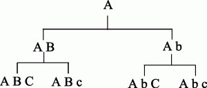 When a class is thus subdivided, it may be called, in relation to its subclasses, a Genus; and in relation to it, the subclasses may be called Species: thus—genus A, species AB and Ab, etc.