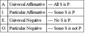 As an aid to the remembering of these symbols we may observe that A. and I. are the first two vowels in affirmo and that E. and O. are the vowels in nego.