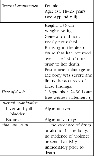 Coroner’s Court, London, September 2004 Post-Mortem Report, Dead Body 13 Body found in river, 7 September, at Stoners Quay