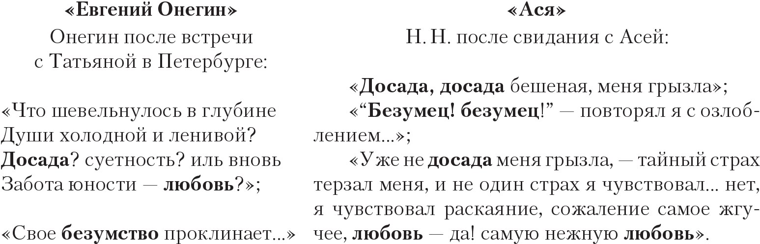 Пушкинская триада – досада, безумство, любовь – у Тургенева усилена и подчеркнута повторением. Чужой опыт подключается к опыту просвещенного, чуткого и восприимчивого Н. Н. – не для того ли, чтобы он мог избежать чужих и не наделать своих ошибок?