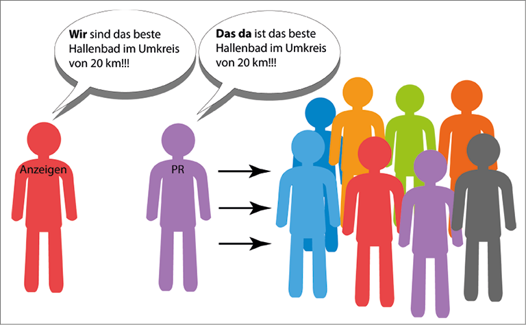 Solche und ähnliche Sätze höre ich regelmäßig in meinen Kursen. In gewis-sen Grenzen sind solche Aussagen durchaus zu verstehen und auch richtig. In vielen Fällen wird die Öffentlichkeitsarbeit von der jeweiligen PR-Abteilung des Betreibers gesteuert. Richtig ist auch: Ein gut laufendes Bad benötigt vielleicht keine großen Anzeigenaktionen in der lokalen Tageszeitung oder einen Plakataushang an den Bushaltestellen der Stadt. Die Besucherzahlen werden unter Umständen auch ohne diese Werbeaktionen konstant bleiben.