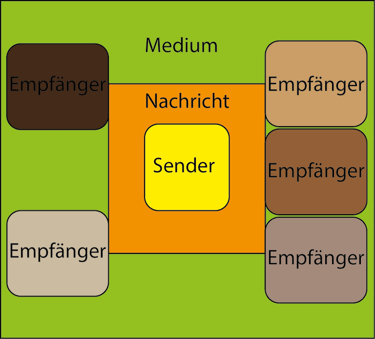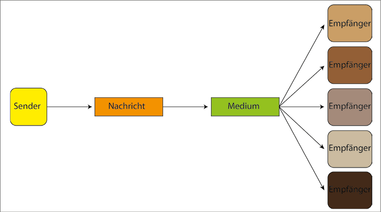 Ein Sender transportierte einen bestimmten Inhalt durch ein Übertragungs-mittel (z.B. eines Druckerzeugnisses) an die Empfänger. Diese hatten nicht die Möglichkeit, über dasselbe Medium eine Antwort an den Sender zu schi-cken, denn sie konnten selbst keine Zeitung drucken.