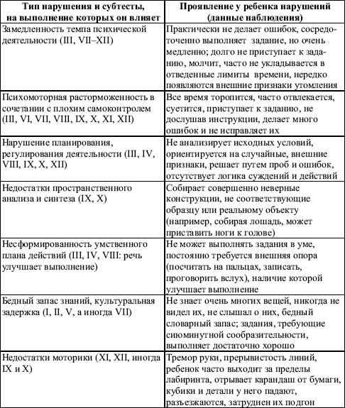 Из данных, полученных Б. В. Зейгарник, видно, что именно через наблюдение удается дать обобщенную характеристику особенностей поведения детей, имеющих разные типы нарушения интеллектуальной деятельности, при выполнении ими тестов.