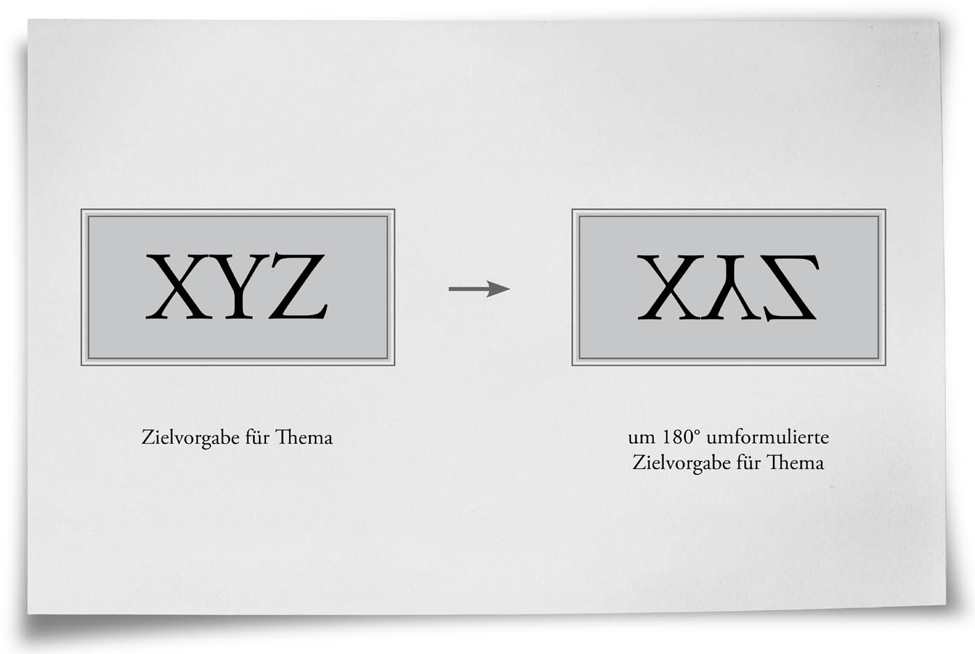 Das Problem wird um 180° umformuliert. Ein hilfreicher Gedanke dabei ist: „Was müssen wir tun, um genau das Gegenteil zu erreichen?“