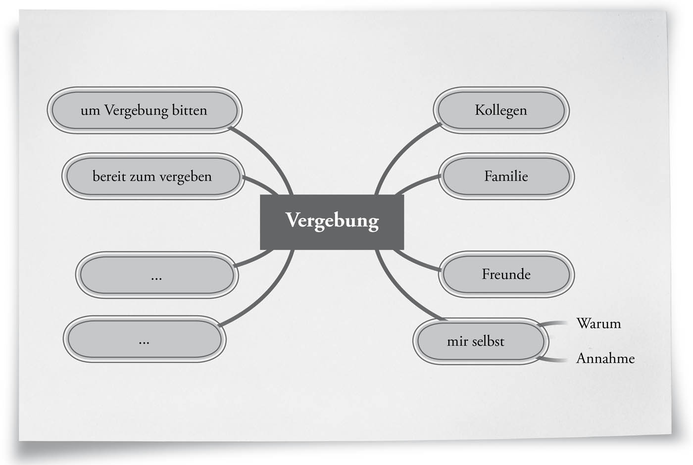 Abzweigung: Familie, Vater, Mutter, Freunde, Kollegen usw. Abzweigung: sich selbst, warum, Annahme usw.