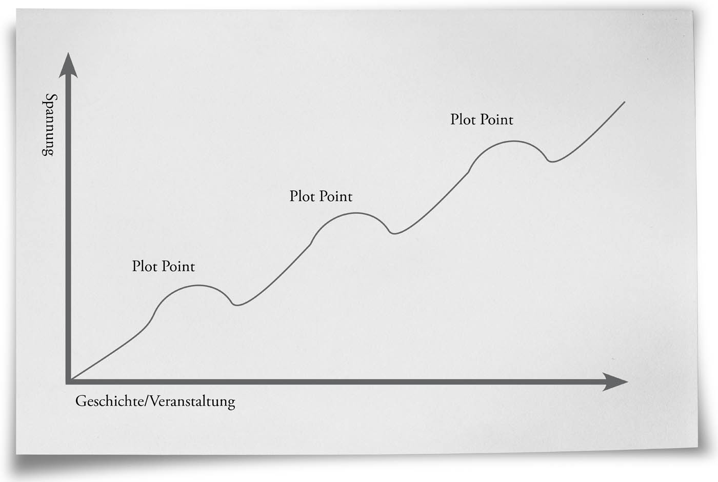 Ein Plot Point ist eine neue Botschaft, eine Information, ein Ereignis oder eine Überraschung, die in das Denkmuster oder in die vorgegebene Richtung eingreift und dem Thema eine neue Dimension oder Richtung gibt. Etwas anderes als das, womit gerechnet wurde, tritt ein. Gerade bei üblichen Abläufen kann somit eine Abwechslung eingebaut werden.