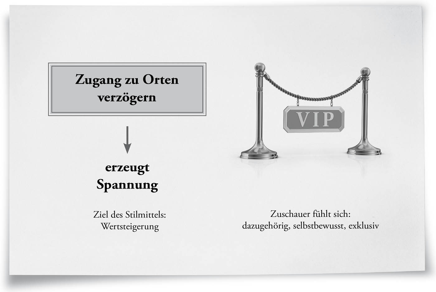 Hinter diesem Stilmittel steht die Idee, einen Bereich durch ein zeitweiliges „Verbot“ interessanter zu machen und so die Aufmerksamkeit der Gottesdienstbesucher zu wecken. Kommen diese schließlich an diesem Ort an, haben sie also diesen „verbotenen Ort“ erobert, fühlen sie sich ein wenig als „Auserwählte“. Es erzeugt Exklusivität. Der Zugang zu einem Bereich o. ä. wird in irgendeiner Form erschwert. Der Besucher hat zwar eine gewisse Vorstellung von diesem Ort, muss aber zuvor ein Hindernis überwinden.