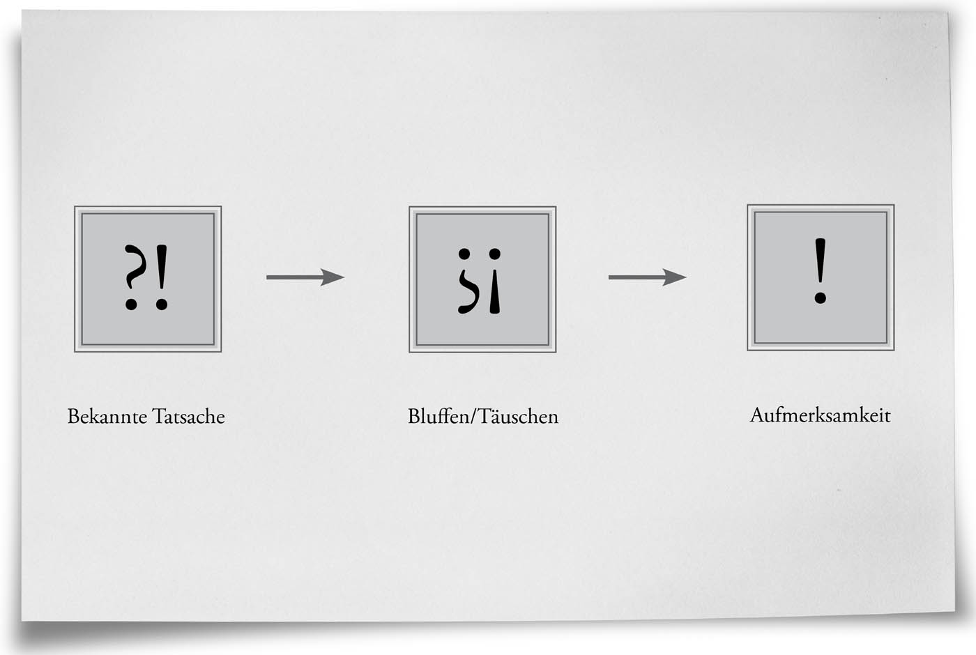 Ein Sachverhalt wird bewusst falsch dargestellt, um die Zuschauer zum Widerspruch anzuregen. Dies kann schon durch ein provokantes Ändern eines Bibelverses beim Vorlesen erzeugt werden. Ziel ist es, die Zuschauer zum Mitdenken und aktiven Zuhören anzuregen.