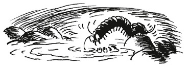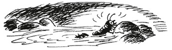 Kicking and squirming, he was carried along through the darkness. He kept going under, and the water entered his breathing holes (he had one in each segment). He would blow it out and pop to the surface again but he knew he couldn’t go on doing this for long. He was choking – choking all along his length. It was terrible! He was going to drown!