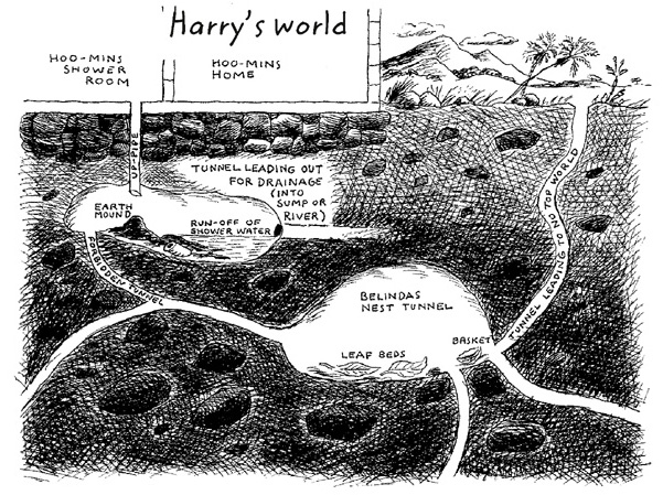 Harry, as I told you, lived in a hot country. But he didn’t know that for a long time because he didn’t live on the surface of the earth where the sun shone a lot. He lived in a mass of dark, cool tunnels under the ground.