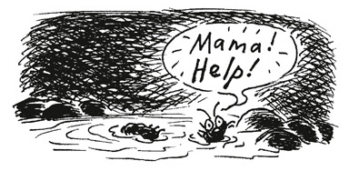 He clawed frantically with his first seven pairs of legs, digging the tiny claws on their tips into the soft, wet earth. But there was too much of him already floating in the scummy water. Something seemed to be pulling at him, dragging him away from the safe ground.