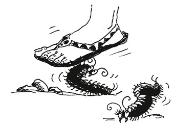 Of course he didn’t take much notice. He was a big, strong, armoured centi (that’s a child centipede) with two fine poison-claws, who could run faster than anything he’d ever met. What could hurt him?
