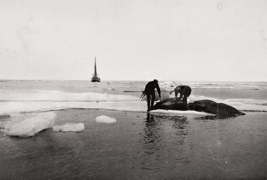 Участники экспедиции Нансена охотятся на моржей. Карское море, сентябрь 1893 года