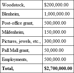 John Churchill, Duke of Marlborough, was pocketing these $2,700,000 about the time when Fléchier, comparing Turenne to Maccabæus, was able to say of him, "that he would never accept any other reward, for the services he rendered to his country, than the honor of having served her."